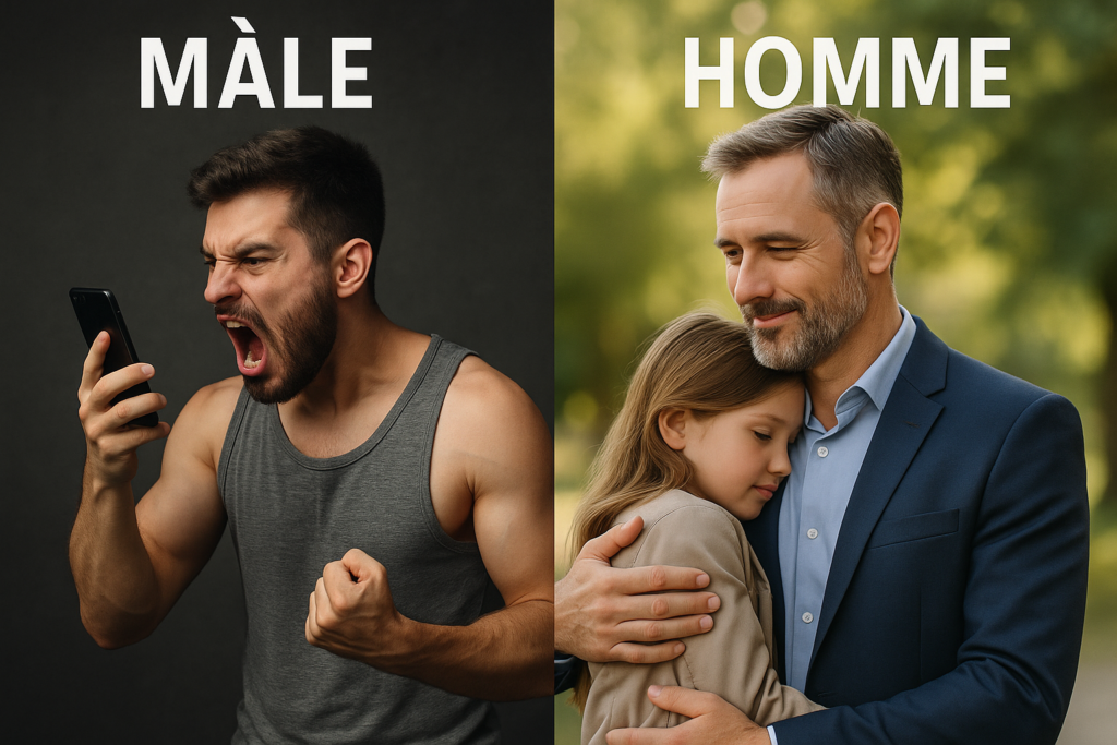 Autrement dit, tout individu masculin n’est pas automatiquement perçu ou reconnu comme un homme dans le sens social du terme. Un mâle peut avoir l’apparence physique d’un adulte mais ne pas manifester les qualités psychologiques ou comportementales que la société associe à la figure de l’homme. Il peut fuir ses responsabilités, manquer d’empathie ou refuser toute remise en question — autant de traits qui s’éloignent de la maturité attendue.